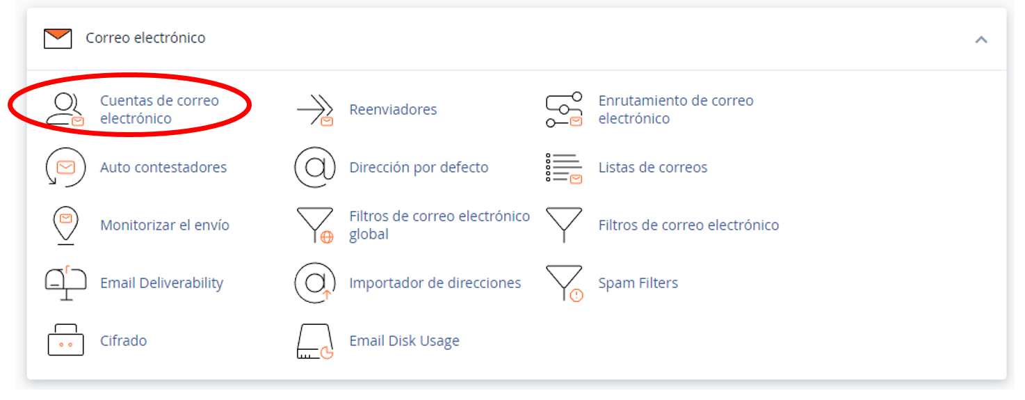 Una vez que hayas iniciado sesión en cPanel, busca y haz clic en la sección "Correo Electrónico" o "Email Accounts".